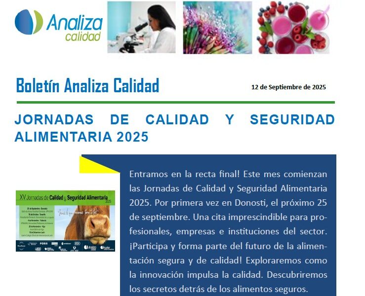 Boletín Analiza 12/09/2025 Analiza010 | 12/09/2025 | Boletín Analiza Jornadas Analiza El “Queso de Burgos” obtiene la Indicación Geográfica Protegida de la Unión Europea Qué son las bacterias Vibrio del marisco y por qué está aumentando su prevalencia Boletin ANALIZA 12 de Septiembre