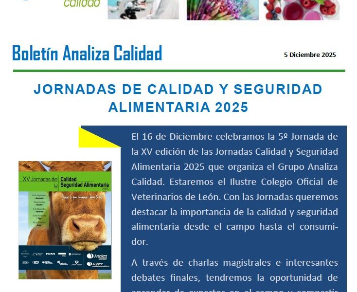 Boletin Analiza 5/12/2025 Analiza010 | 05/12/2025 | Boletín Analiza Participa en la ultima Jornada de Calidad y Seguridad Alimentaria que celebramos en León… Boletín ANALIZA 5 Diciembre